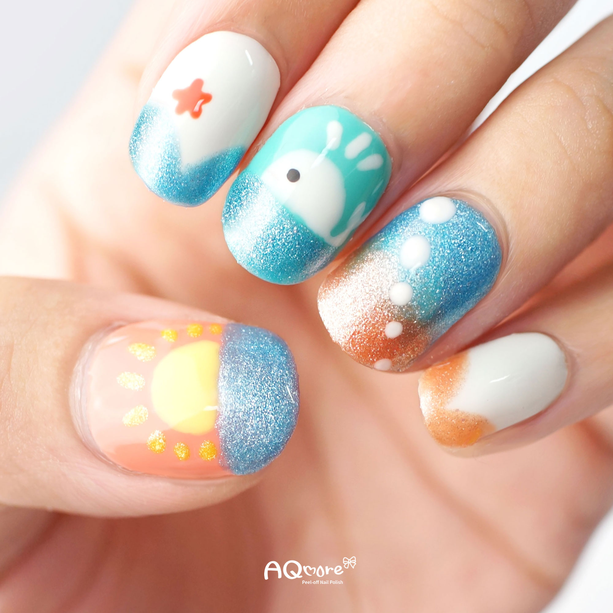 無名指的藍x橘亮粉漸層也很美喔!